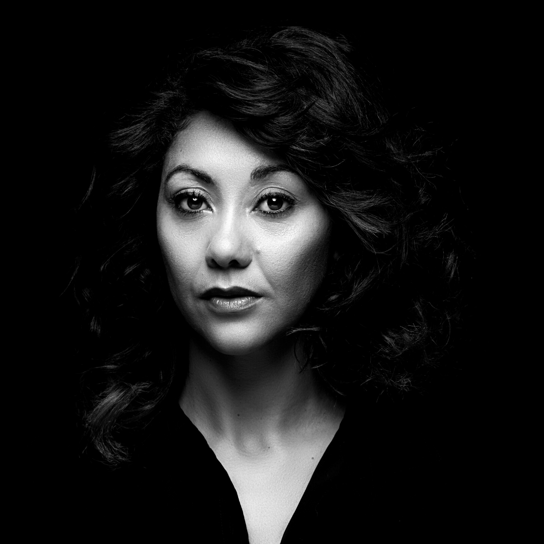 [Image Description: Jacqui Du Toit. A brown skinned woman infront of black backdrop and wearing a black dress. She has wavy black hair and dark brown eyes looking at the camera with a slight hint of a smile.]